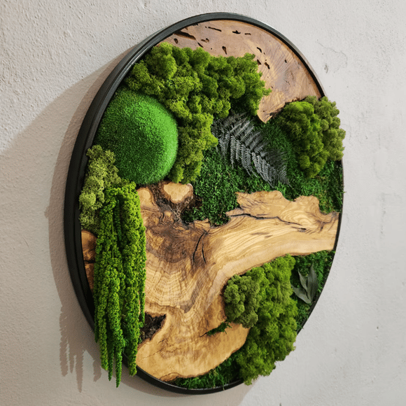 A custom made moss olive wood metal frame wall decor is a unique and personalized type of art that combines the natural elements of moss and wood with the sleekness of metal.